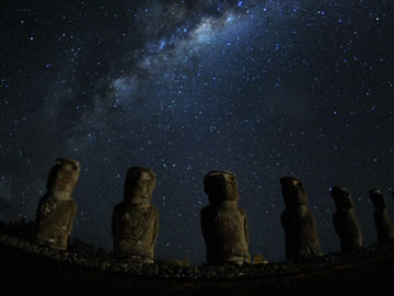 イースター島と言えば、なんと言ってもモアイ像。モアイ像の傍らで皆既日食を体験するため世界中からたくさんの人々が集まります。写真に写っている天の川は、南半球でしか見ることができない、銀河系の中心付近。イースター島で見た天の川は、北半球で見る天の川とちがい、とても明るいです。