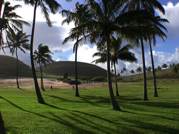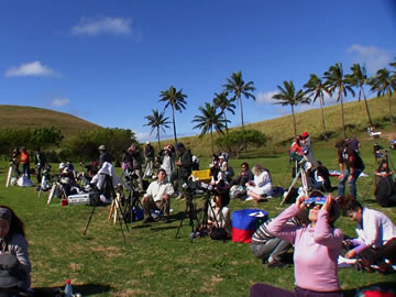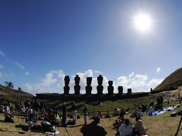 イースター島は、周囲わずか58kmの小さな島です。観測地として選んだのは、島の北部にあるアナケナビーチ。島で唯一の海水浴場です。奥の方にモアイ像が見えます。