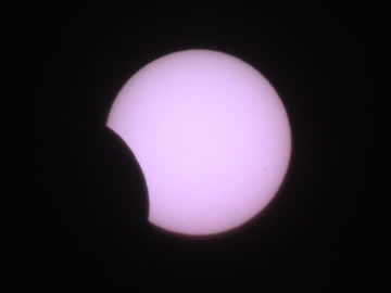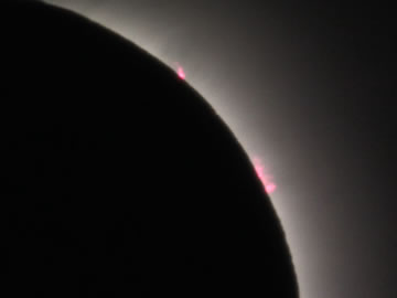 黒い太陽の渕に見えている、赤いところはプロミネンスです。太陽は地球の直径の109倍もの大きさがありますので、これでも、地球数個分に相当する大きさがあるそうです。