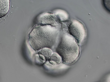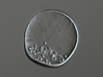 16細胞期。小割球だけが特殊なタンパク質を持っており、他の割球とは異なる性質の細胞になります。