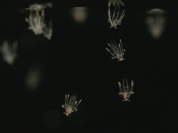幼生は、8本の腕を発達させ、海中を漂うように泳ぎながら生活してきました。その浮遊生活をやめ、海の底に降りるときがやってきました。